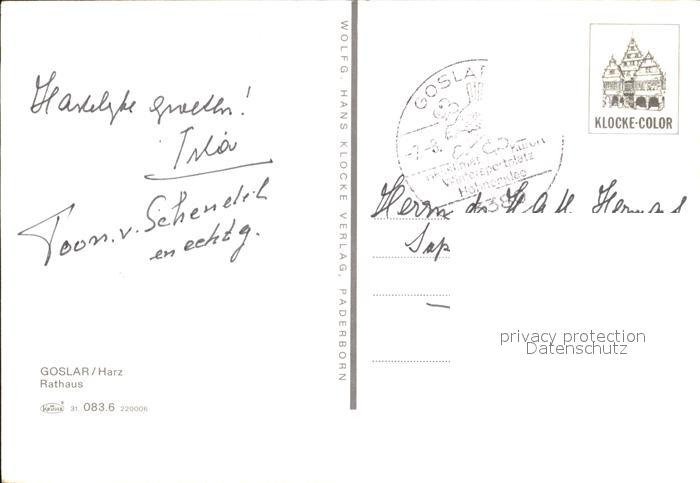 72420932 alte Postkarte GOSLAR Harz Niedersachsen Rathaus Marktplatz Kirche postalisch gelaufen Erhaltung siehe scans KatCode: 11110003153005
