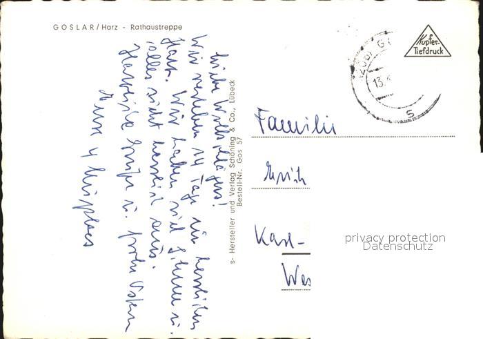 72409430 alte Postkarte GOSLAR Harz Niedersachsen Rathaustreppe postalisch gelaufen Erhaltung siehe scans KatCode: 11110003153005