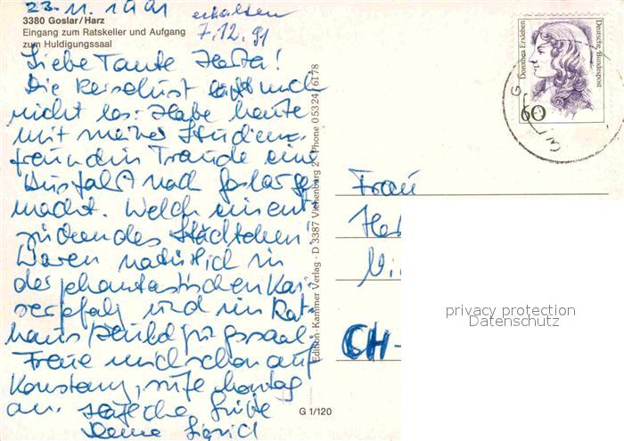 72856802 alte Postkarte GOSLAR Harz Niedersachsen Ratskeller Aufgang zum Huldigungssaal postalisch gelaufen Erhaltung siehe scans [LiesaD40] KatCode: 11110003153005