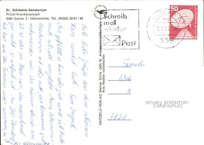 72494301 alte Postkarte GOSLAR Harz Niedersachsen Schuessler Sanatorium postalisch gelaufen Erhaltung siehe scans KatCode: 11110003153005