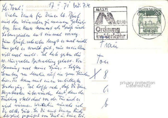72402969 alte Postkarte GOSLAR Harz Niedersachsen Schuhhof Marktkirche postalisch gelaufen Erhaltung siehe scans KatCode: 11110003153005