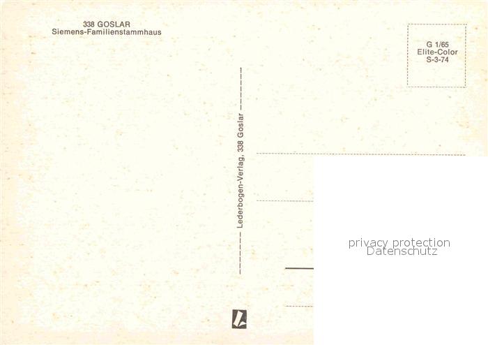 72701090 GOSLAR Harz Niedersachsen Siemens Familienstammhaus postalisch nicht gelaufen Erhaltung siehe scans [FriedD77] KatCode: 11110003153005