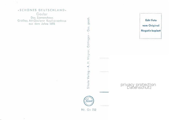 72794002 GOSLAR Harz Niedersachsen Siemenshaus postalisch nicht gelaufen Erhaltung siehe scans [AndreD76] KatCode: 11110003153005