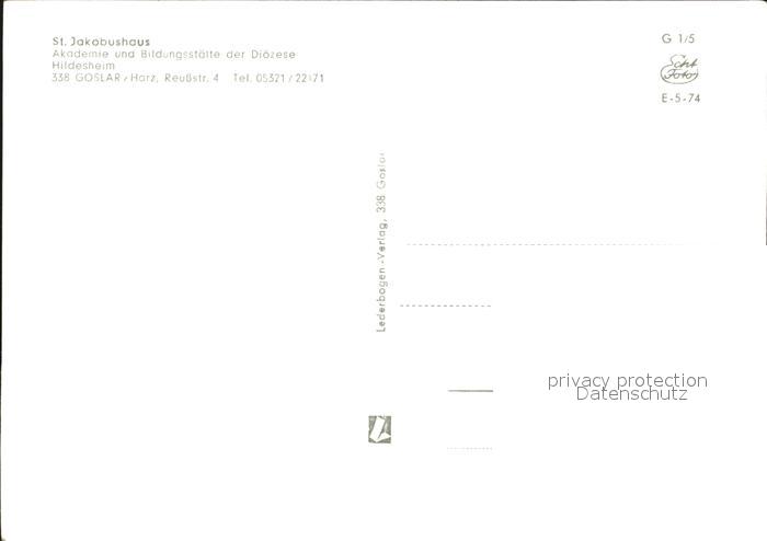 72472355 GOSLAR Harz Niedersachsen St. Jakobushaus postalisch nicht gelaufen Erhaltung siehe scans KatCode: 11110003153005