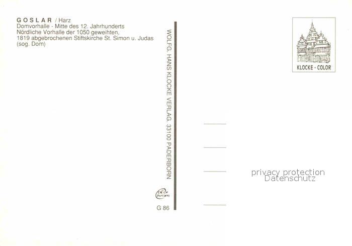 72684859 GOSLAR Harz Niedersachsen Stiftskirche St Simon und Judas Domvorhalle postalisch nicht gelaufen Erhaltung siehe scans [WerneD78] KatCode: 11110003153005