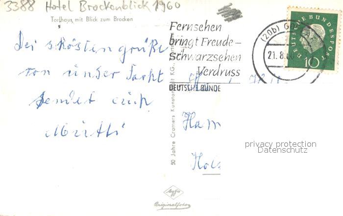 73703979 GOSLAR Harz Niedersachsen Torfhaus Hotel Brockeblick postalisch gelaufen Erhaltung siehe scans [LiesaD40] alte Postkarte Lies Katcode 11110003153005