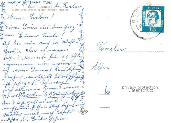 73103337 alte Postkarte Goslar Haus Hessenkopf Muettererholungsheim postalisch gelaufen Erhaltung siehe scans [KathaD81] KatCode: 11110003153005