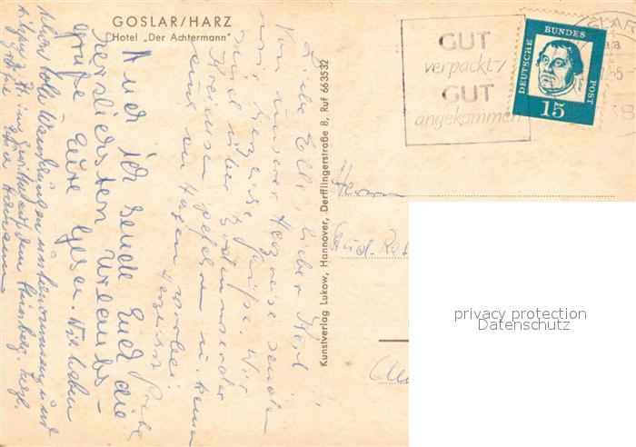 73094954 alte Postkarte Goslar Hotel Der Achtermann postalisch gelaufen Erhaltung siehe scans [KathaD81] KatCode: 11110003153005