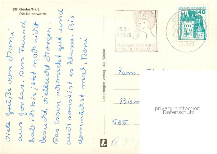 73105489 alte Postkarte Goslar Hotel Kaiserworth postalisch gelaufen Erhaltung siehe scans [WerneD78] KatCode: 11110003153005