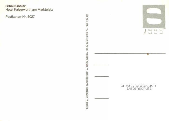 72912001 Goslar Hotel Kaiserworth Marktplatz postalisch nicht gelaufen Erhaltung siehe scans [NatalD47] KatCode: 11110003153005