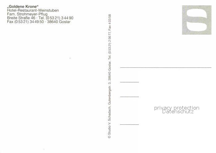 72902904 Goslar Hotel Restaurant Goldene Krone Weinstube Fachwerkhaus postalisch nicht gelaufen Erhaltung siehe scans [FriedD77] KatCode: 11110003153005