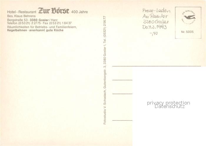 73005125 Goslar Hotel Restaurant Zur Boerse postalisch nicht gelaufen Erhaltung siehe scans [WerneD78] KatCode: 11110003153005
