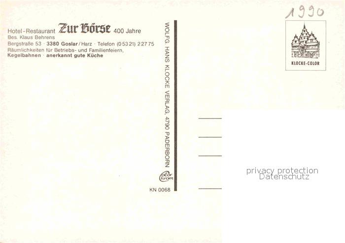 72911989 Goslar Hotel Zur Boerse postalisch nicht gelaufen Erhaltung siehe scans [NatalD47] KatCode: 11110003153005