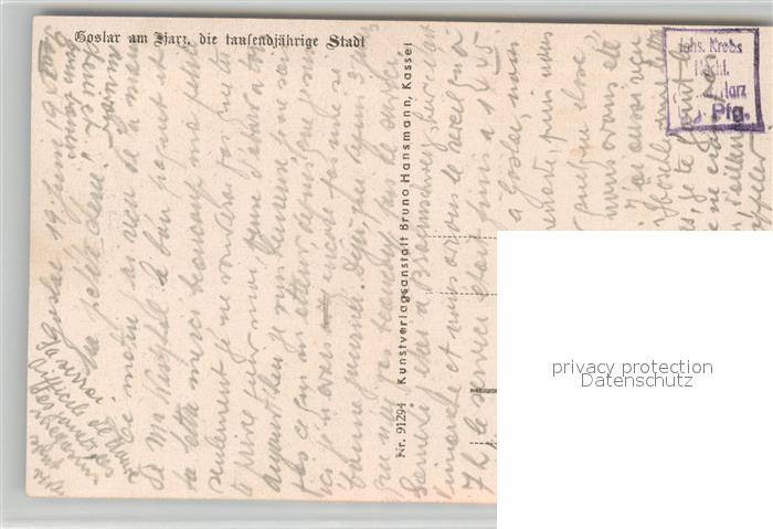 73365103 alte Postkarte Goslar Jaegerdenkmal postalisch gelaufen Erhaltung siehe scans [WerneD78] KatCode: 11110003153005