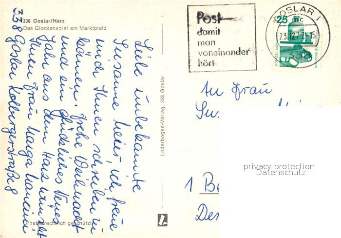 73183193 alte Postkarte Goslar Kaiser Otto I Marktplatz Bergleute des Mittelalters im 18ten Jhdt und in moderner Zeit Glockenspiel postalisch gelaufen Erhaltung siehe scans [WerneD78] KatCode: 11110003153005