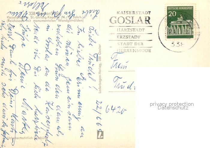 73030450 alte Postkarte Goslar Kaiserpfalz mit St Ulrichs Kapelle postalisch gelaufen Erhaltung siehe scans [WerneD78] KatCode: 11110003153005
