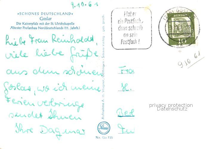 73149081 alte Postkarte Goslar Kaiserpfalz mit St Ulrichskapelle Serie Schoenes Deutschland postalisch gelaufen Erhaltung siehe scans [FriedD77] KatCode: 11110003153005