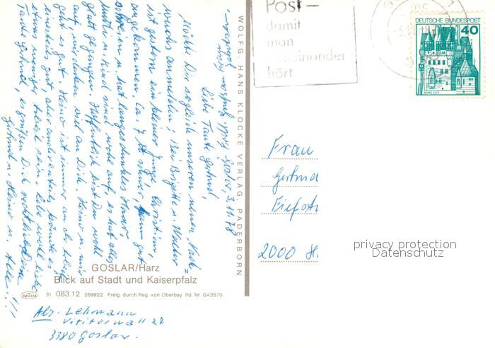 73088586 alte Postkarte Goslar Kaiserplatz Fliegeraufnahme postalisch gelaufen Erhaltung siehe scans [NatalD47] KatCode: 11110003153005