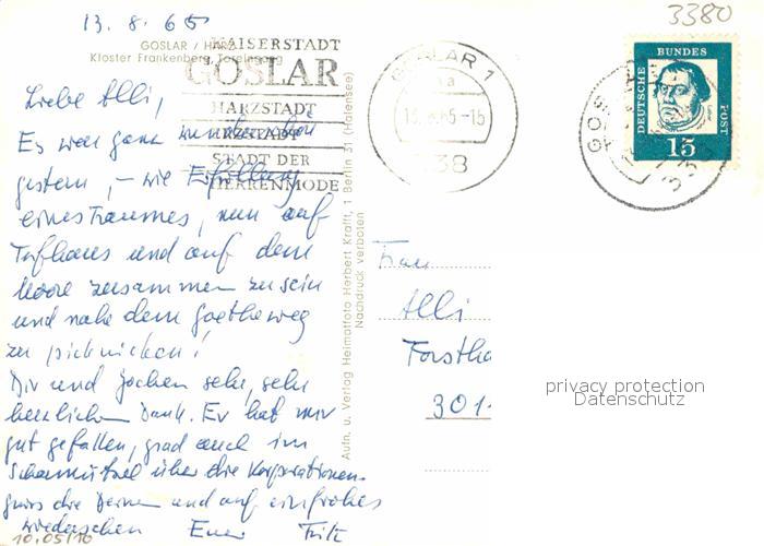 72919141 alte Postkarte Goslar Kloster Frankenberg Tor Eingang postalisch gelaufen Erhaltung siehe scans [WerneD78] KatCode: 11110003153005
