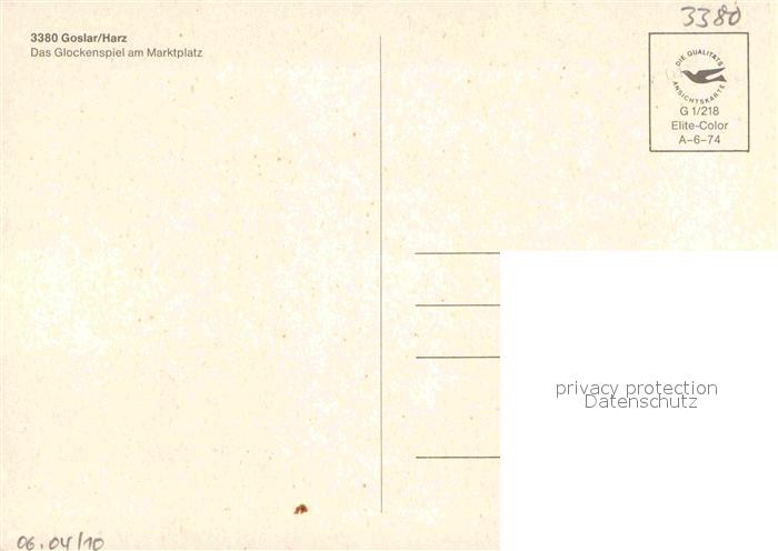 72911933 Goslar Marktplatz Glockenspiel postalisch nicht gelaufen Erhaltung siehe scans [NatalD47] KatCode: 11110003153005