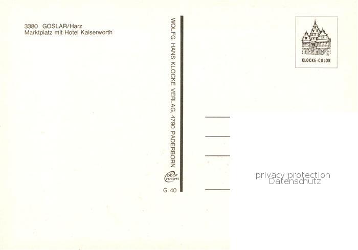 73095765 Goslar Marktplatz Hotel Kaiserworth postalisch nicht gelaufen Erhaltung siehe scans [NatalD47] KatCode: 11110003153005