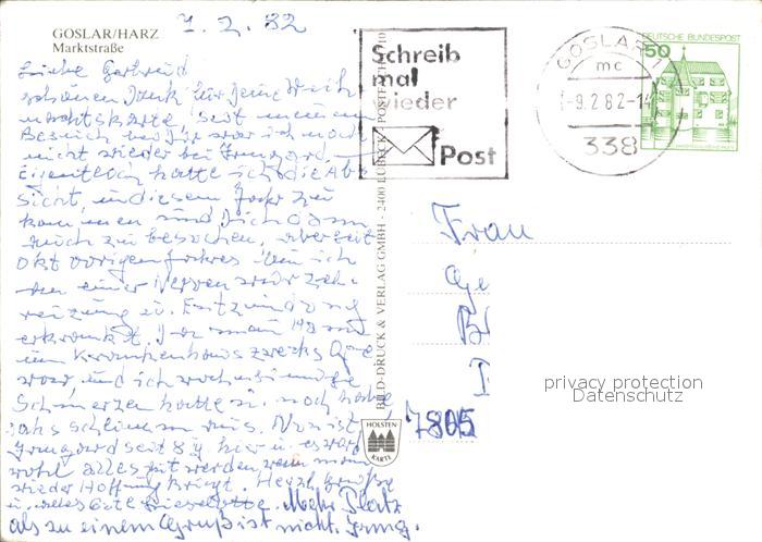 alte Postkarte Goslar Marktstrasse postalisch gelaufen Erhaltung siehe scans
