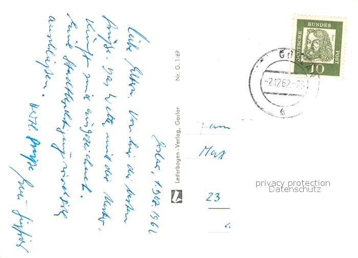 72953733 alte Postkarte Goslar Muenzstrasse Frauenbergerkirche Marktkirche Marktplatz postalisch gelaufen Erhaltung siehe scans [PaolaD17] KatCode: 11110003153005