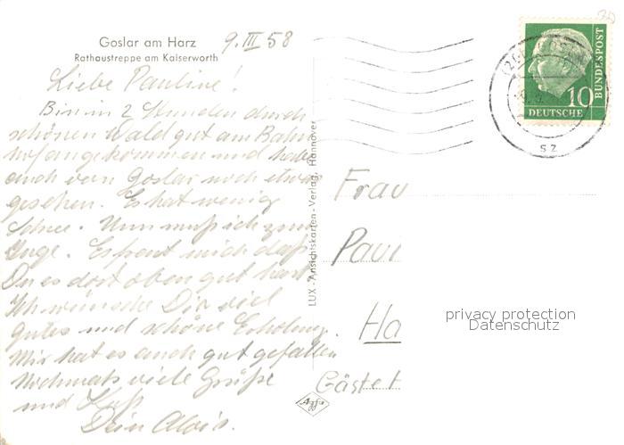 72956080 alte Postkarte Goslar Rathaustreppe Kaiserworth postalisch gelaufen Erhaltung siehe scans [PaolaD17] KatCode: 11110003153005