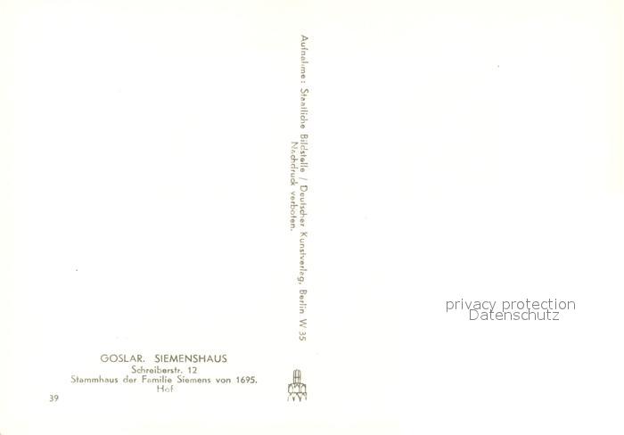 73070027 Goslar Siemenshaus postalisch nicht gelaufen Erhaltung siehe scans [WerneD78] KatCode: 11110003153005