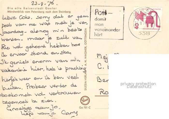 73308128 alte Postkarte Goslar Steinberg postalisch gelaufen Erhaltung siehe scans [NatalD47] KatCode: 11110003153005