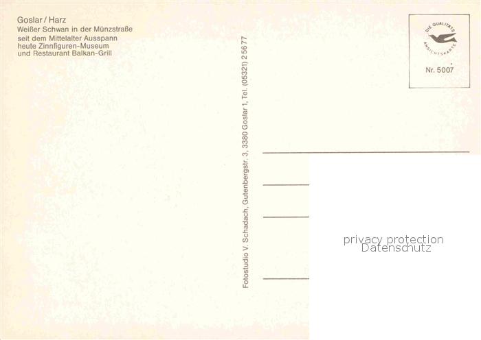 72928941 Goslar Weisser Schwan in der Muenzstrasse Restaurant Zinnfiguren Museum Fachwerk Historisches Gebaeude postalisch nicht gelaufen Erhaltung siehe scans [FriedD77] KatCode: 11110003153005