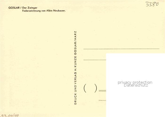 72913507 Goslar Zwinger Federzeichnung von Albin Neubauer Kuenstlerkarte postalisch nicht gelaufen Erhaltung siehe scans [FriedD77] KatCode: 11110003153005
