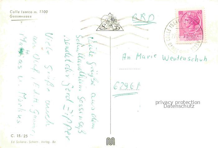 74075328 old postcard Gossensass Colle Isarco 1100m Bolzano Suedtirol IT Calle Isarco postalisch gelaufen Erhaltung siehe scans [WerneD78] KatCode: 11240000000000