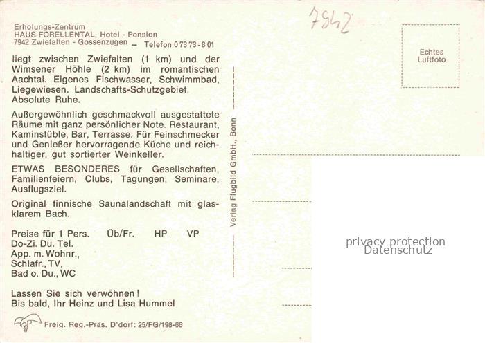 74041148 Gossenzugen Erholungszentrum Haus Forellental Hotel Pension postalisch nicht gelaufen Fliegeraufnahme Erhaltung siehe scans [FriedD77] KatCode: 11110008415085