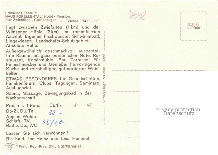 74059458 Gossenzugen Haus Forellental Hotel Fliegeraufnahme postalisch nicht gelaufen Erhaltung siehe scans [WerneD78] KatCode: 11110008415085