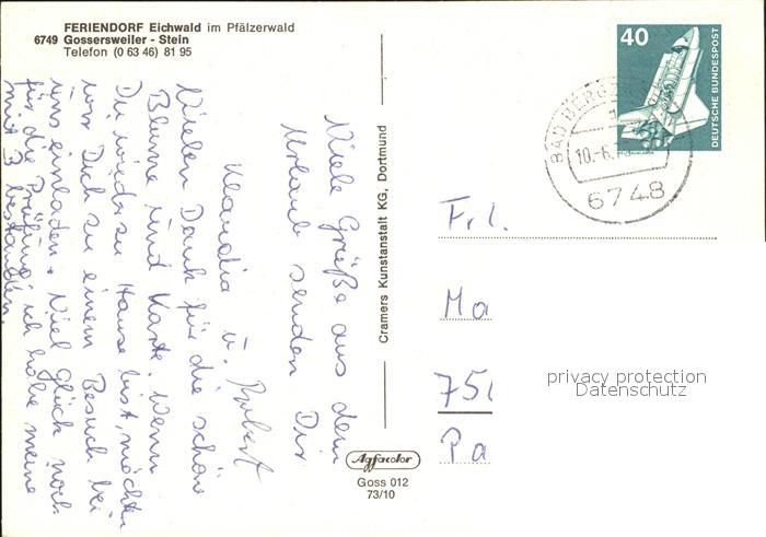 72032803 alte Postkarte Gossersweiler-Stein Feriendorf Eichwald Ferienhaus Restaurant Terrasse Hallenbad postalisch gelaufen KatCode: 11110007337033