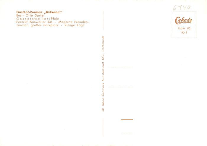 73887614 Gossersweiler-Stein Gasthof Pension Birkenhof Gastraum postalisch nicht gelaufen Erhaltung siehe scans [FriedD77] KatCode: 11110007337033