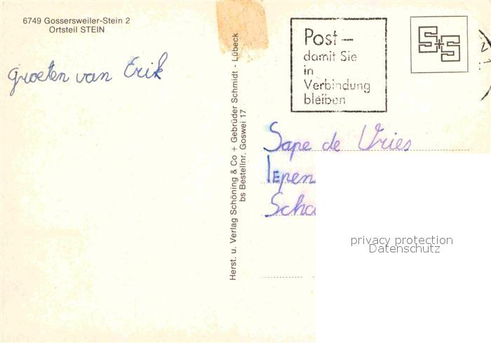 72919235 alte Postkarte Gossersweiler-Stein postalisch gelaufen Erhaltung siehe scans [NatalD47] KatCode: 11110007337033