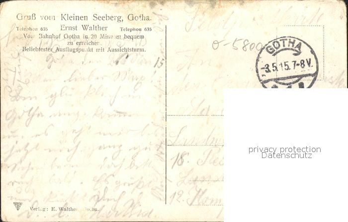 31704853 alte Postkarte Gotha Thueringen Etablissement Kleiner Seeburg Sternwarte Denkmal v. Herzog Ernst II Gotha Altenburg postalisch gelaufen Feldpost Erhaltung siehe scans KatCode: 11110016067029