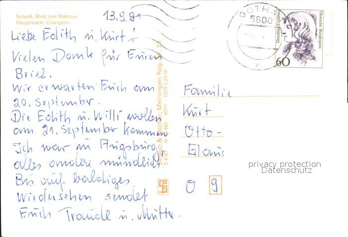 72427313 alte Postkarte Gotha Thueringen Hauptmark Orangerie postalisch gelaufen Erhaltung siehe scans KatCode: 11110016067029