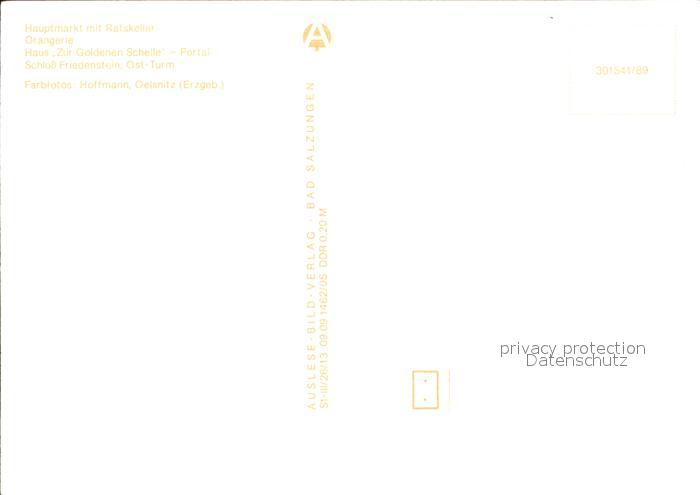 72321394 Gotha Thueringen Hauptmarkt Rathaus Orangerie Haus Zur Goldenen Schelle Portal Schloss Friedenstein Ostturm postalisch nicht gelaufen Erhaltung siehe scans KatCode: 11110016067029
