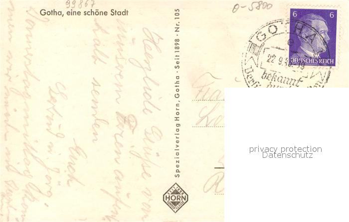 43345496 alte Postkarte Gotha Thueringen Marktstrasse postalisch gelaufen Erhaltung siehe scans [WerneD78] KatCode: 11110016067029