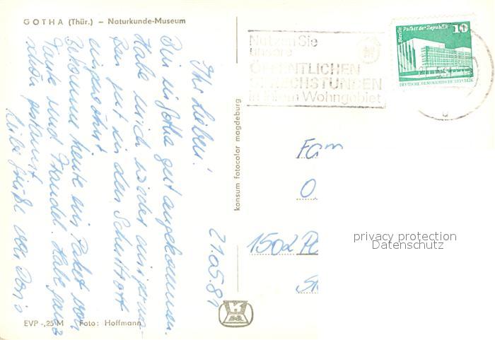 73741068 alte Postkarte Gotha Thueringen Naturkunde-Museum postalisch gelaufen Erhaltung siehe scans [LiesaD40] KatCode: 11110016067029