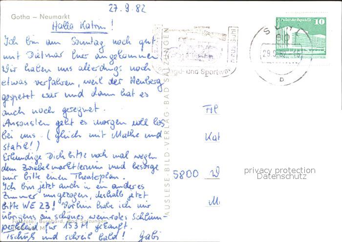 72458109 alte Postkarte Gotha Thueringen Neumarkt postalisch gelaufen Erhaltung siehe scans KatCode: 11110016067029