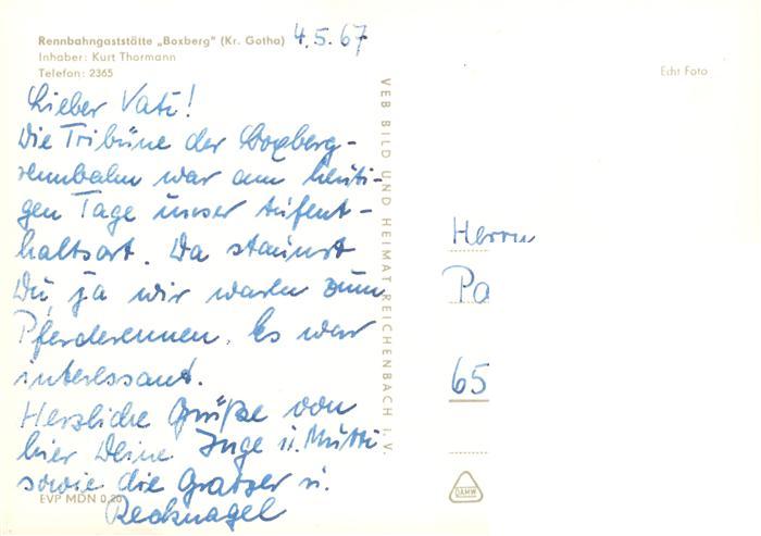 73893043 alte Postkarte Gotha Thueringen Rennbahngaststaette Boxberg Gastraum Pferd postalisch gelaufen Erhaltung siehe scans [WerneD78] KatCode: 11110016067029