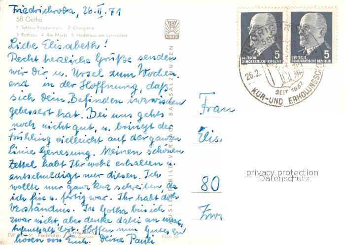 72627749 alte Postkarte Gotha Thueringen Schloss Friedenstein Orangerie Rathaus Am Markt Hochhaus Leninplatz postalisch gelaufen Erhaltung siehe scans [WerneD78] KatCode: 11110016067029