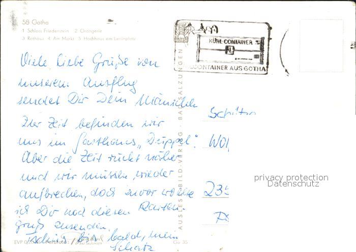 72556750 alte Postkarte Gotha Thueringen Schloss Friedenstein Orangerie Rathaus Markt Hochhaus Leninplatz postalisch gelaufen Erhaltung siehe scans [KathaD79] KatCode: 11110016067029
