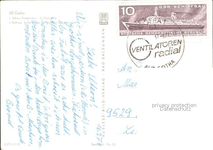 72457332 alte Postkarte Gotha Thueringen Schloss Friedenstein Orangerie Rathaus Markt Hochhaus Leninplatz postalisch gelaufen Erhaltung siehe scans KatCode: 11110016067029