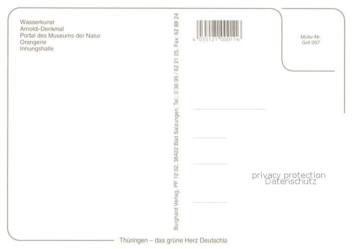 73157804 Gotha Thueringen Wasserkunst Arnoldi Denkmal Portal Museum Orangerie Innungshalle postalisch nicht gelaufen Erhaltung siehe scans [FriedD77] KatCode: 11110016067029
