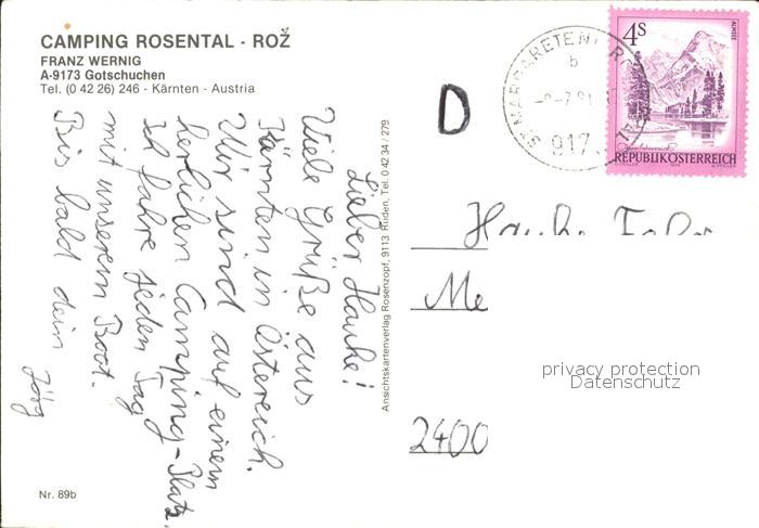 72447152 alte Postkarte Gotschuchen Camping Rosental Roz See postalisch gelaufen Erhaltung siehe scans KatCode: 11390213020923